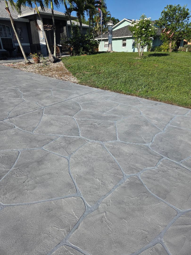 Over the years, we have developed several proprietary techniques that allow us to reshape and customize your concrete surfaces in an efficient and affordable manner. Throughout Southwest Florida, we typically resurface concrete driveways, pool decks, and home entryways. Choose from an array of decorative stamped concrete overlays, hand troweled textures, natural stone-like finishes, and surface coatings!
